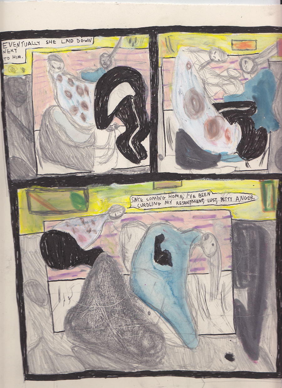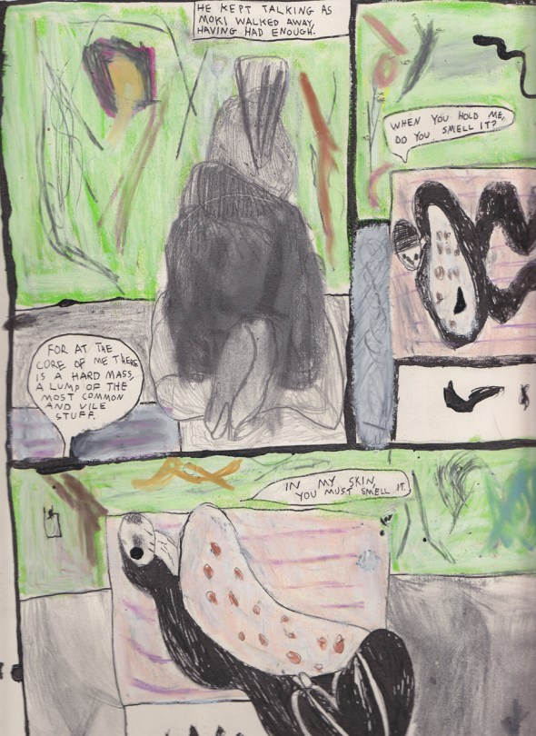 Above is page 1 of a new long story I’m working on. And below is a sequence from it that I’m working on now. Sorry for the less than perfect scans…this story should be in print, along with Here I Am! , in comicbook format from DOMINO in December.