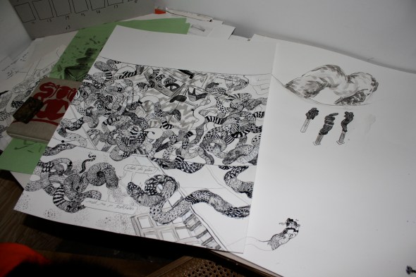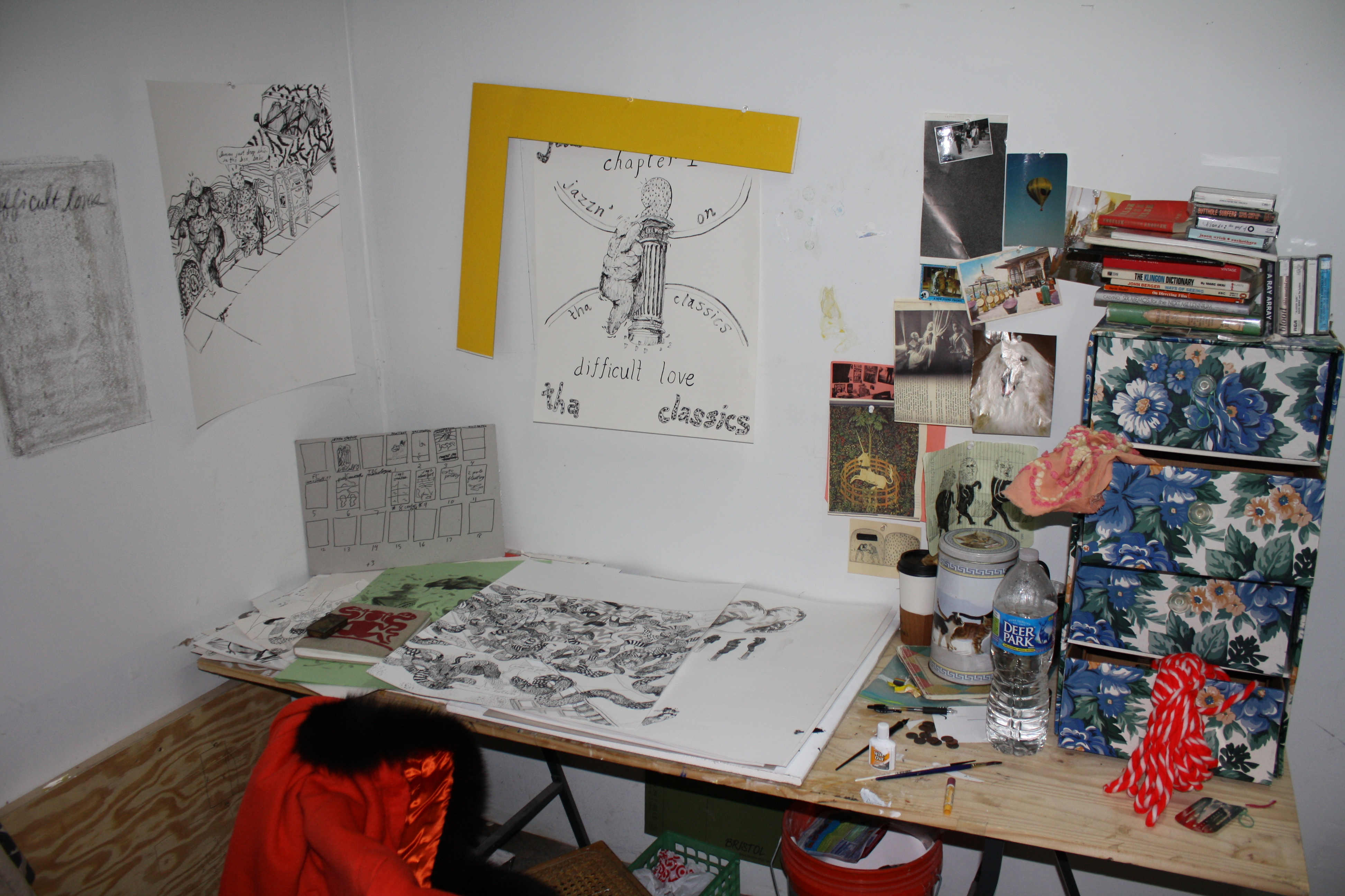 Posted: January 14, 2012 Filed under: News 2 CommentsMolly Colleen O’connell is hard at work on her new book DIFFICULT LOVES, which will be out from DOMINO this Spring. Molly was nice enough to send us some pics from her studio where the book is being worked on. Ooof…hold on to your hats for this book.