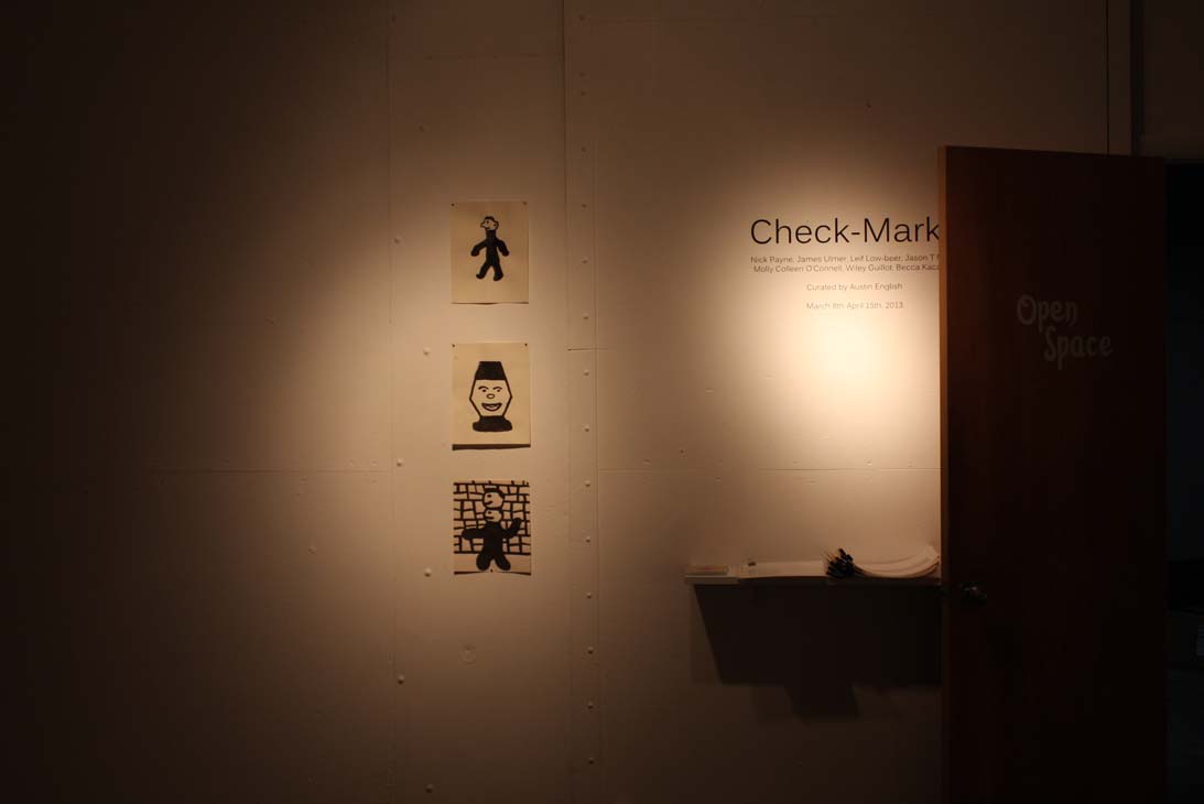 Posted: March 12, 2013 Filed under: News 2 CommentsOpen Space Baltimore hosted the March 8th opening of CHECK-MARKS, a group exhibition I curated with work by Nick Payne, James Ulmer, Leif Low-beer, Jason T Miles, Molly Colleen O’Connell, Wiley Guillot and Becca Kacanda. Open Space did a wonderful job presenting the work, and the opening itself was incredibly fun! If you’re in Baltimore, the show runs until April 15th—but in you can’t make it, here are some photos of the opening and the art!