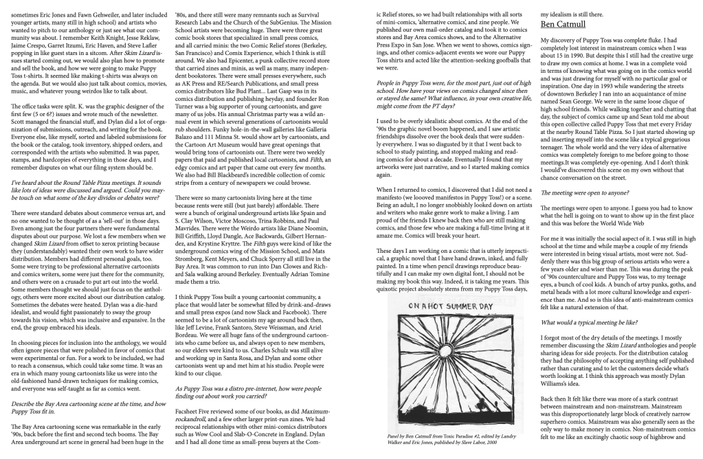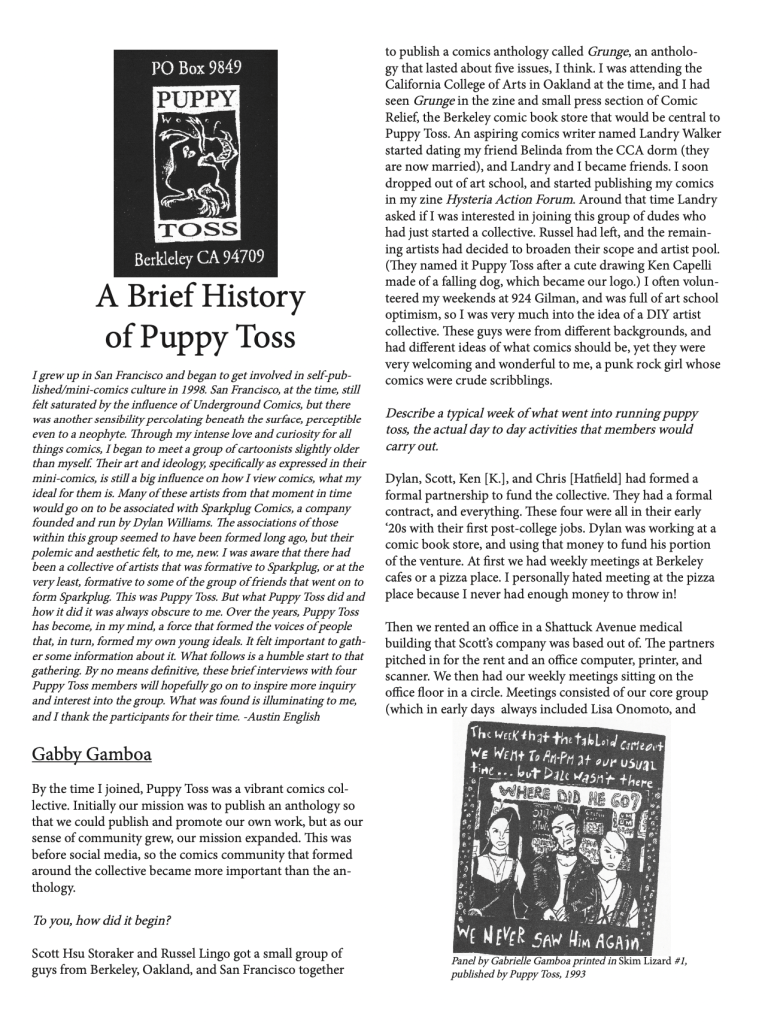 A brief history of Puppy Toss, a Bay Area comics collective that Dylan helped found in the early 90s